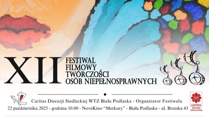 Region Patronat medialny Caritas Pon. 20.10.2025 09:26:43 XII Festiwal Filmowy Twórczości Osób Niepełnosprawnych