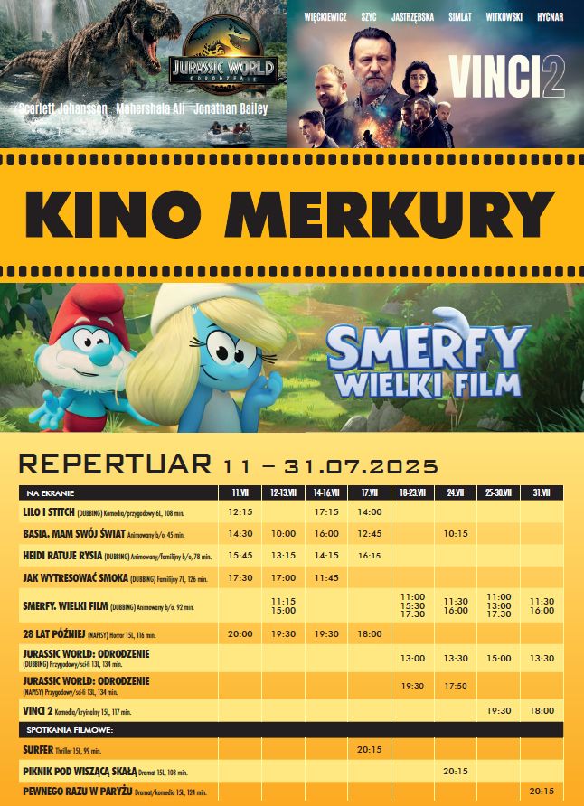 Poniżej przedstawiamy Państwu repertuar Kina Merkury na okres 11 do 31 lipca: