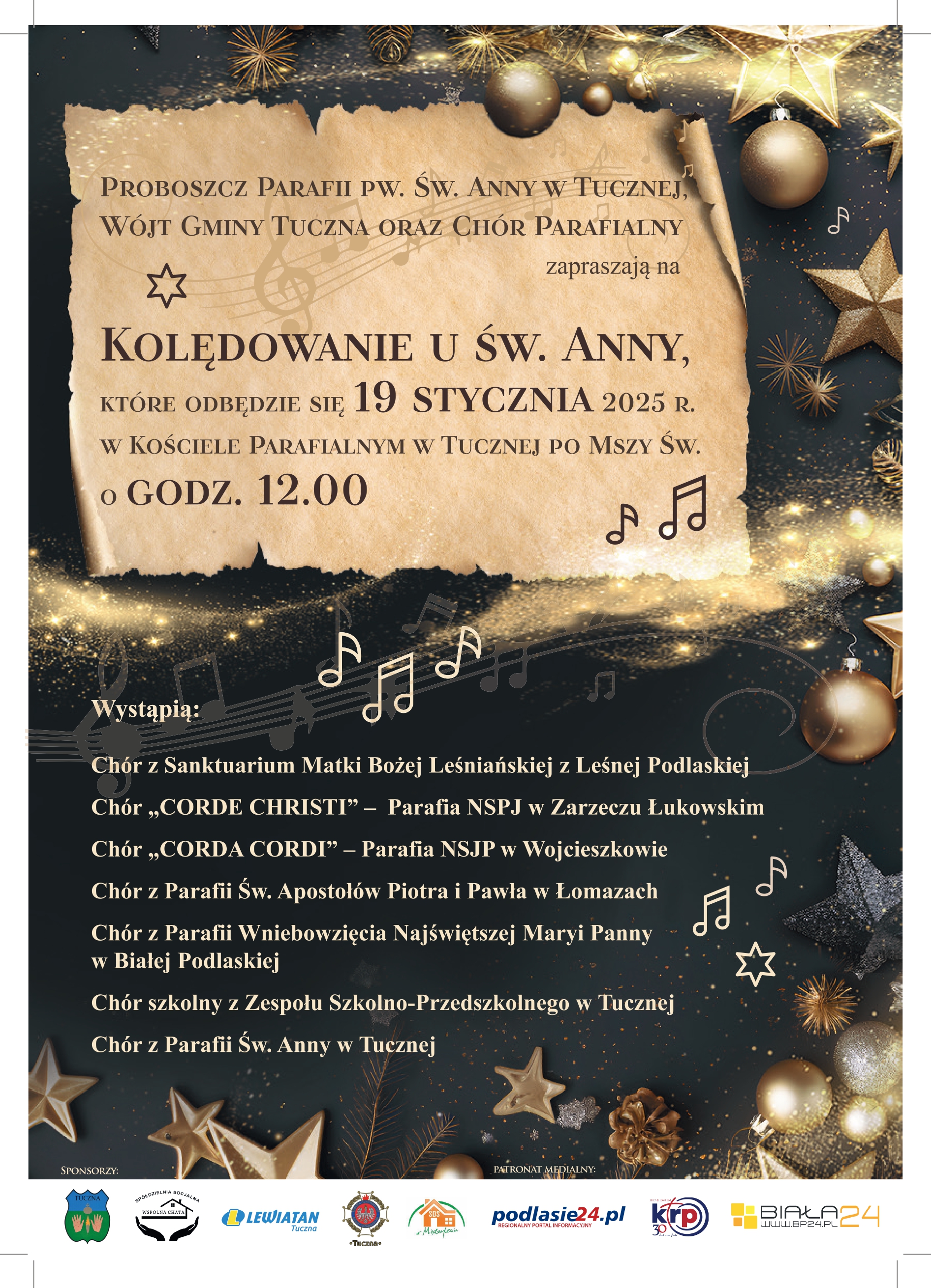 Drugi koncert kolęd organizuje Parafia św. Anny w Tucznej, Gmina Tuczna i chór parafialny. Kolęd i pastorałek w wykonaniu siedmiu chórów, w tym dwóch lokalnych: parafialnego i szkolnego z Zespołu Szkolno-Przedszkolnego w Tucznej oraz pięciu chórów zaproszonych, będzie można będzie wysłuchać w niedzielę, 19 stycznia w kościele parafialnym w Tucznej.Przyjadą chóry z Sanktuarium Matki Bożej Leśniańskiej z Leśnej Podlaskiej, Chór, „CORDE CHRISTI" – z Parafii NSPJ w Zarzeczu Łukowskim, Chór „CORDA CORDI" – z Parafii NSJP w Wojcieszkowie, Chór z Parafii Św. Apostołów Piotra i Pawła w Łomazach oraz Chór z Parafii Wniebowzięcia Najświętszej Maryi Panny w Białej Podlaskiej.