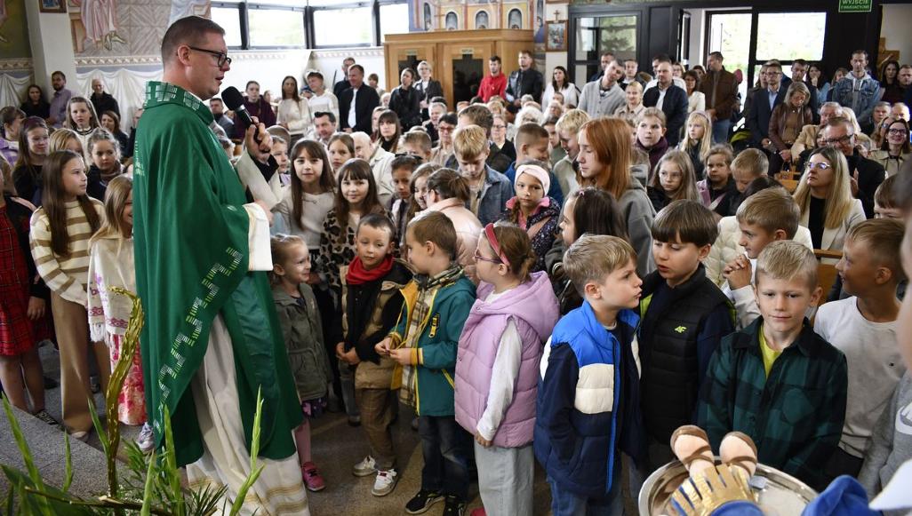 W czasie homilii ks. Michał w bardzo ciepły i przystępny sposób opowiedział dzieciom o św. Michale Archaniele. Wykorzystał do tego „świętulankę” – niezwykłą pluszową zabawkę ukazującą św. Michała Archanioła – która w dziecięcy sposób przybliżyła postać niebiańskiego Patrona. Dzieci słuchały z zaciekawieniem, a cała atmosfera była pełna radości i rodzinnego ciepła.Na zakończenie dnia przedstawiciele Dziecięcych Kół Żywego Różańca oraz inne dzieci z parafii złożyły ks. Michałowi serdeczne życzenia z okazji jutrzejszych imienin. Również dorośli – reprezentanci scholi dorosłych Ubi Caritas oraz Młodzieżowego Koła Żywego Różańca pw. św. Carlo Acutisa – wyrazili swoją wdzięczność podczas Mszy Świętej o godz. 16:00.