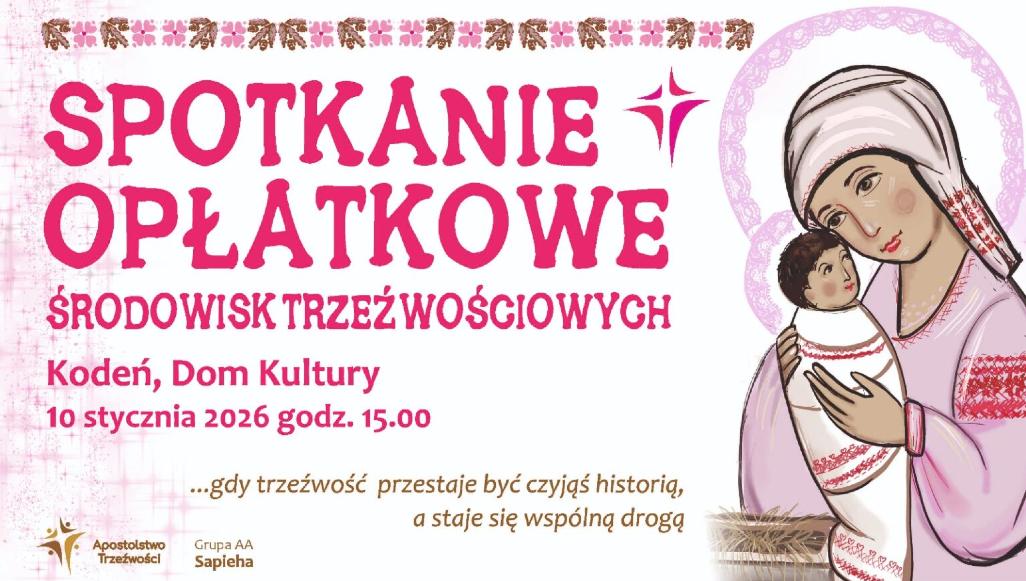 W sobotę, 10 stycznia o godz. 15:00 w Domu Kultury w Kodniu odbędzie się Spotkanie Opłatkowe Środowisk Trzeźwościowych Diecezji Siedleckiej. Wydarzenie skierowane jest do osób uzależnionych, ich rodzin i bliskich, a także do wszystkich, którym bliska jest troska o trzeźwość oraz duchowe i ludzkie wsparcie osób podejmujących drogę do wolności.