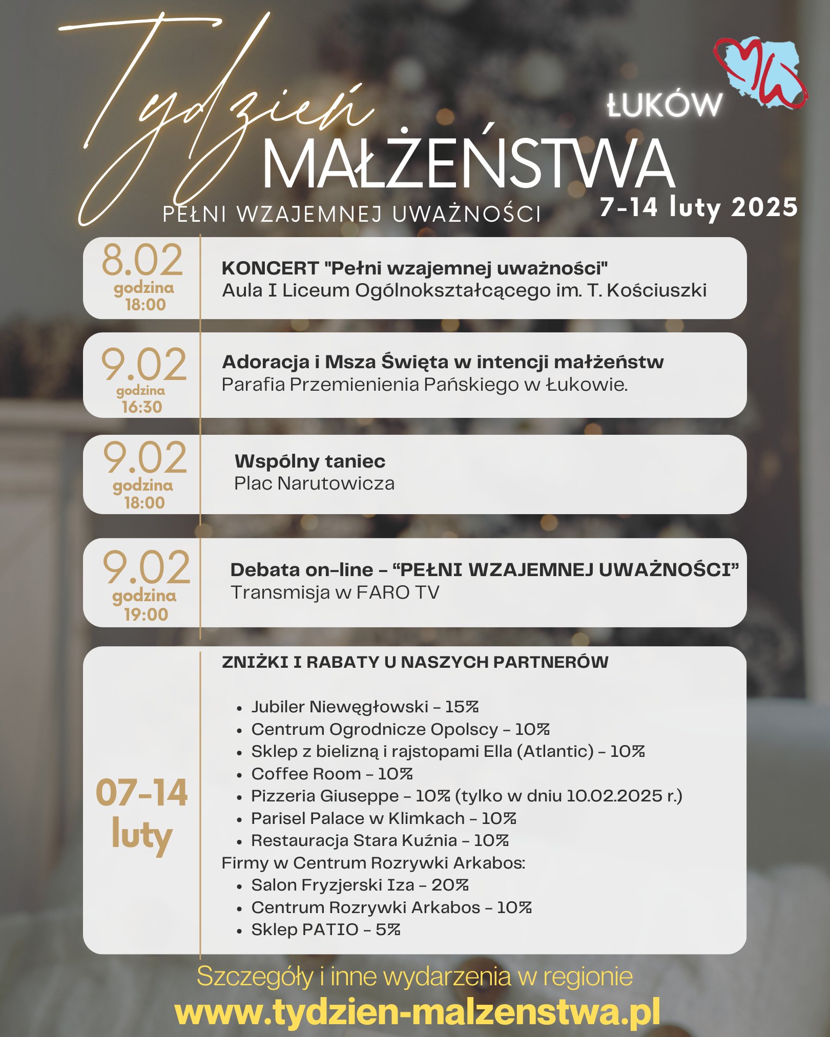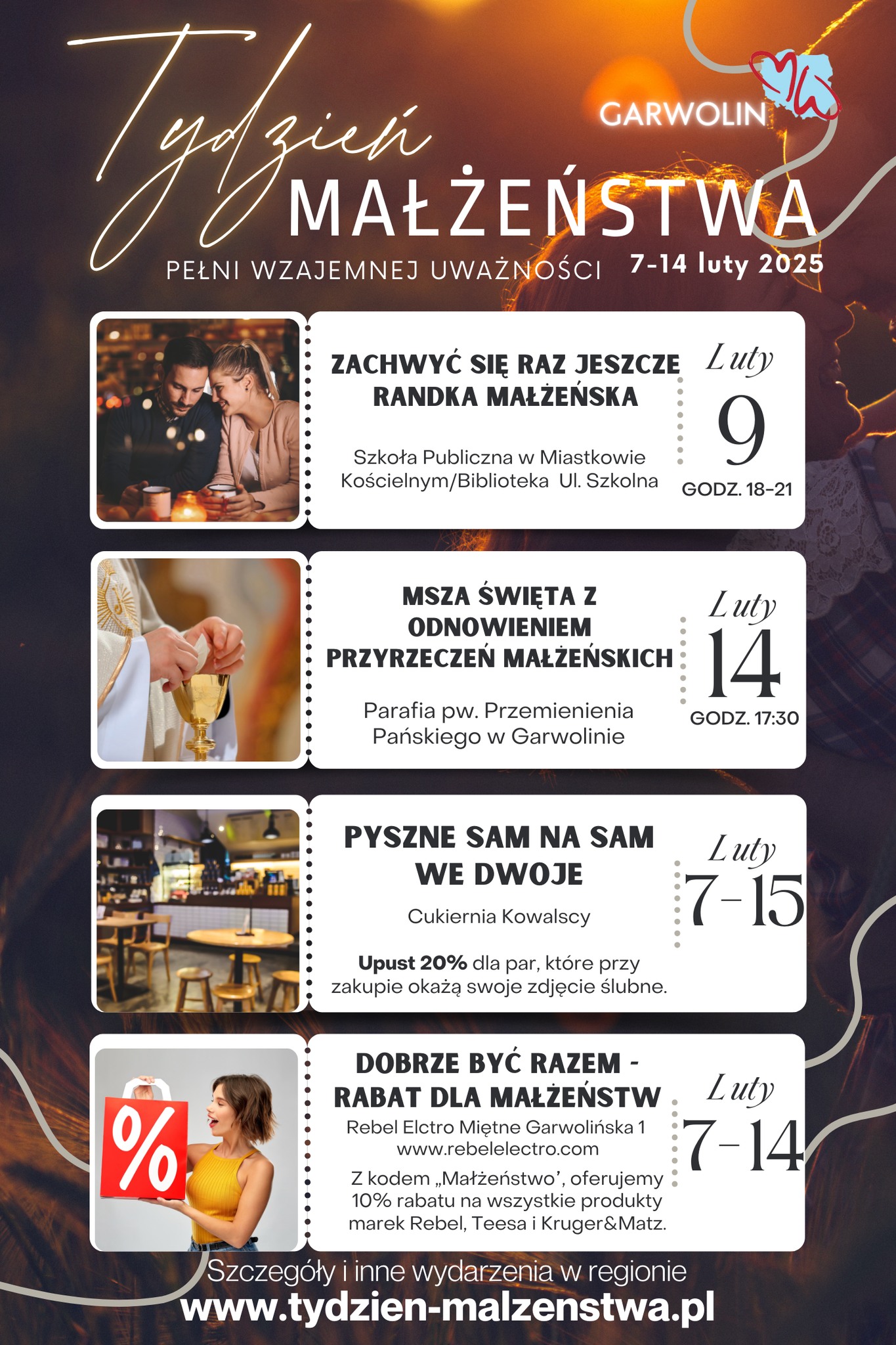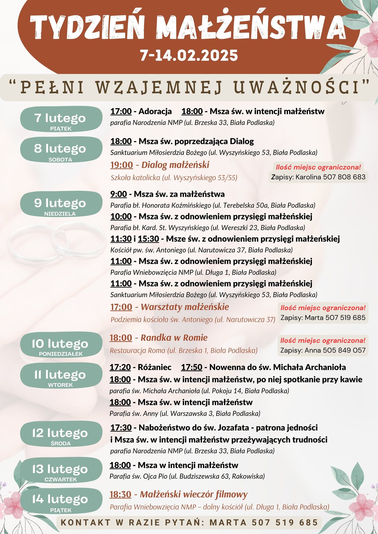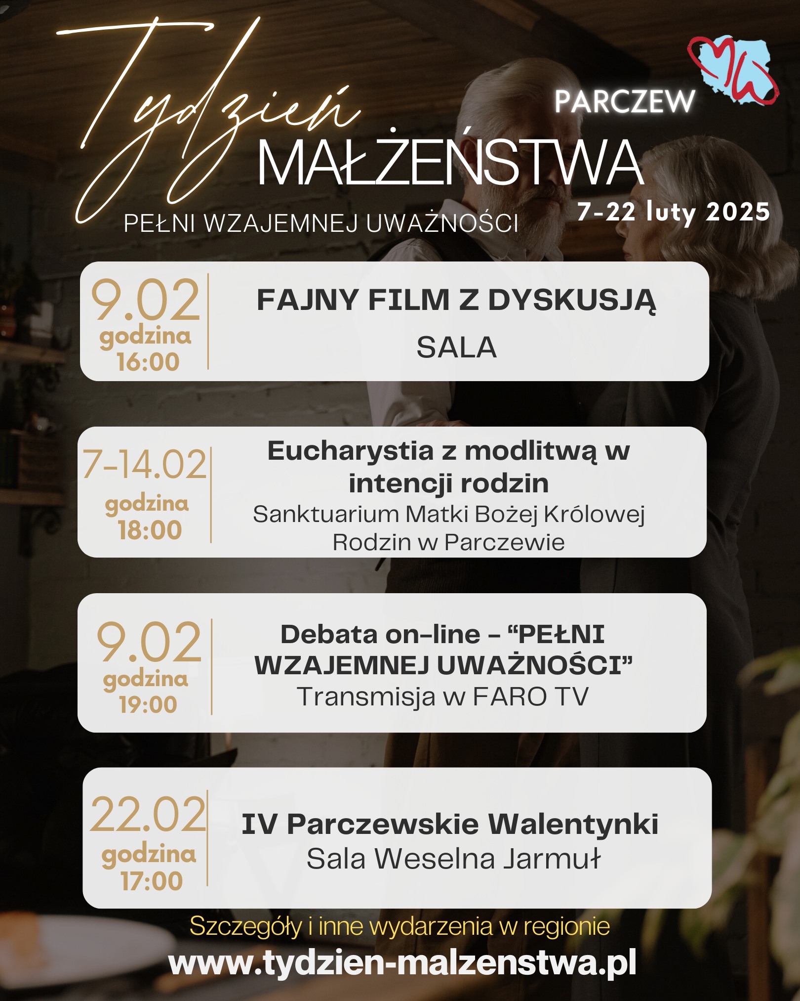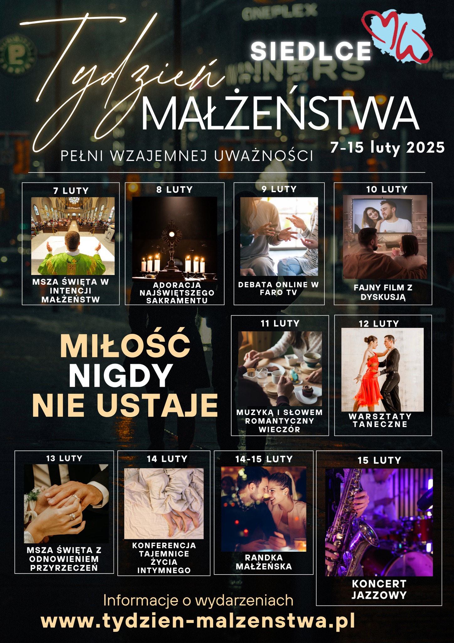 Szczegóły dotyczące wydarzeń w Diecezji Siedleckiej znajdują się tu https://www.tydzien-malzenstwa.pl