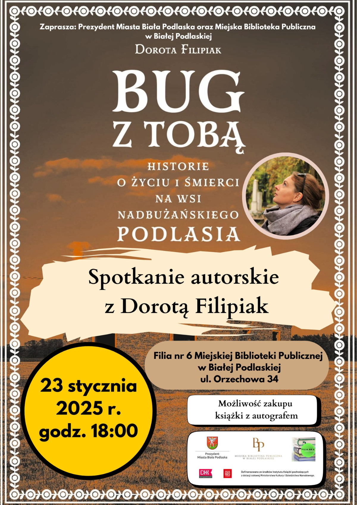 Historie o życiu i śmierci na wsi nadbużańskiego Podlasia, przedstawia najnowsza książka Doroty Filipiak – współpracującej z redakcją „Krainy Bugu”, mieszkanki Warszawy, ale też wsi nad Bugiem. W czwartek, 23 stycznia, o godz. 18.00 w Filii nr 6 Miejskiej Biblioteki Publicznej w Białej Podlaskiej odbędzie się spotkanie autorskie.