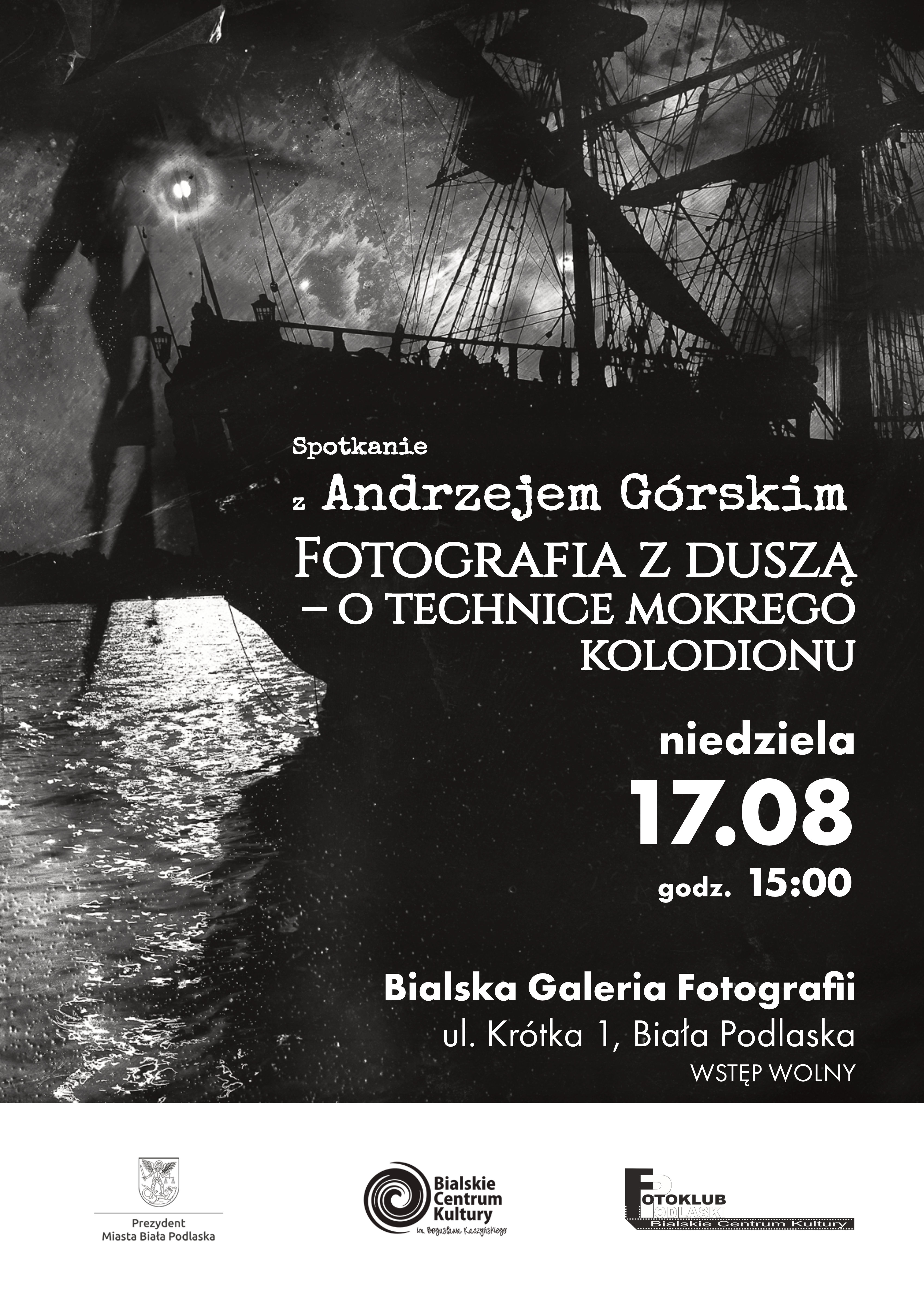Spotkanie z Andrzejem Górskim poświęcone technice mokrego kolodionu – jednej z najbardziej wyjątkowych metod fotograficznych XIX wieku – odbędzie się w Bialskiej Galerii Fotografii 17 sierpnia o godz. 15:00.Metoda ta, stosowana m.in. przez fotoreporterów wojny secesyjnej i powstania styczniowego oraz w atelier portretowych, polega na naświetleniu i wywołaniu szklanej płyty powleczonej emulsją kolodionową, zanim zdąży wyschnąć. Dzięki temu powstają unikatowe obrazy o niepowtarzalnym charakterze.