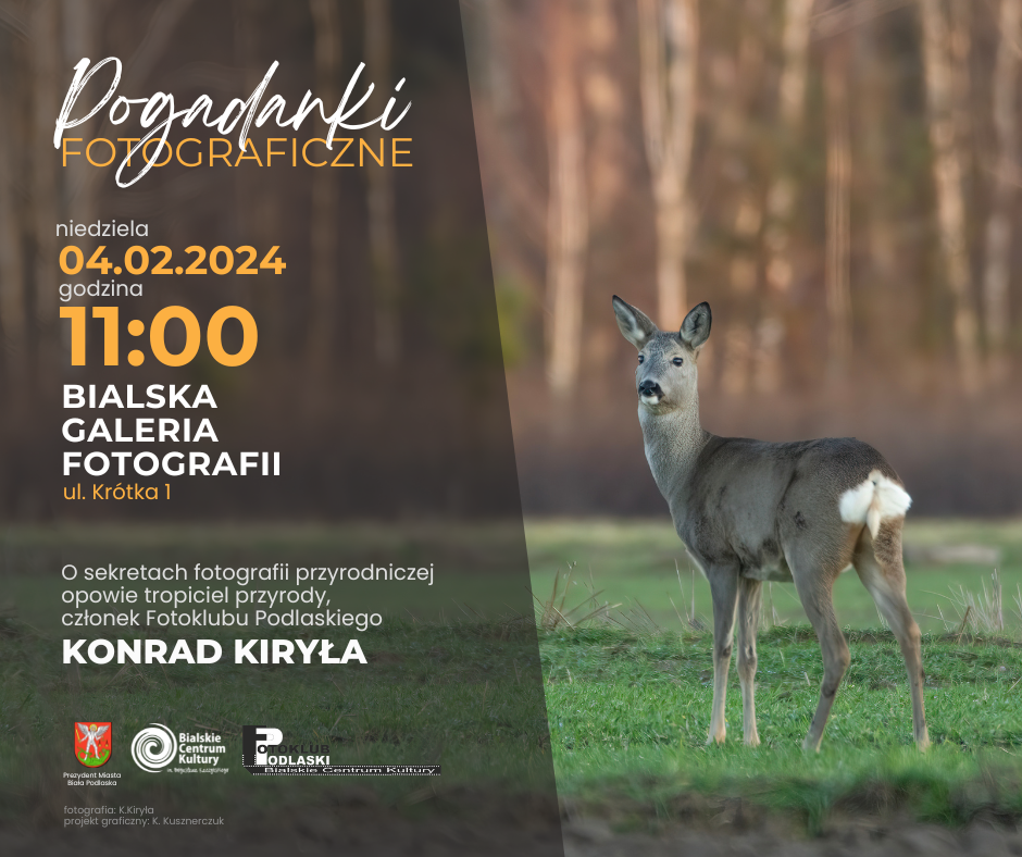 W niedzielę, 4 lutego w Bialskiej Galerii Fotografii odbędą się Pogadanki Fotograficzne. O sekretach fotografii przyrodniczej opowie tropiciel przyrody, członek Fotoklubu Podlaskiego – Konrad Kiryła. Początek o godz. 11:00.
