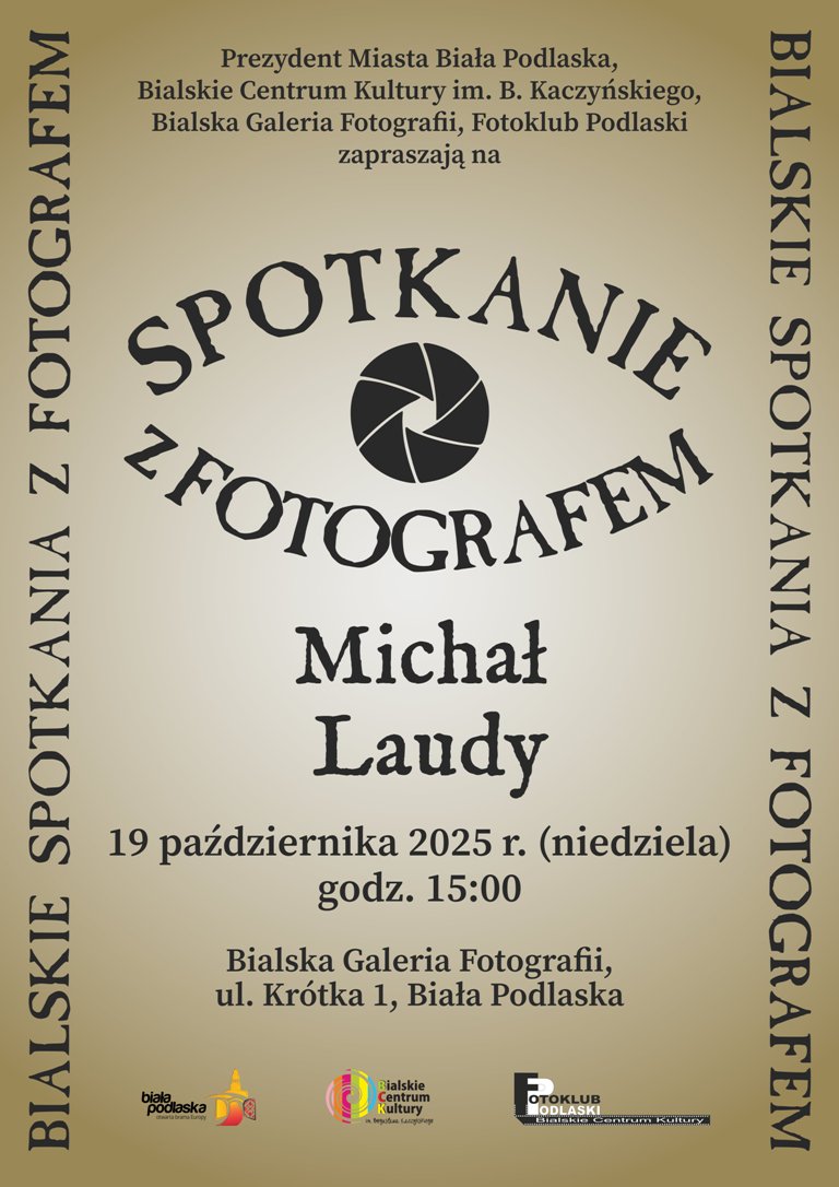 Michał Laudy – z pochodzenia wilczynianin, z Białą Podlaską w sercu, z konieczności w Lublinie. Z zawodu dziennikarz, obecnie pracownik fabryki, a w wolnych chwilach fotoreporter sportowy. Obecny na największych imprezach sportowych rangi mistrzostw świata, Europy i Polski. Jeździ po kraju i świecie za polskimi reprezentantami, głównie w lekkoatletyce i sportach halowych. Współpracuje z agencją Pressfocus przy obsłudze dużych wydarzeń. Jego zdjęcia były wielokrotnie publikowane w prasie codziennej, a publikacji internetowych trudno zliczyć. Dwukrotny laureat Polskiego Konkursu Fotografii Sportowej. Nie definiuje siebie jako artysty – raczej jako solidnego rzemieślnika.Spotkanie poprowadzi Małgorzata Piekarska, instruktor ds. fotografii Bialskiego Centrum Kultury.