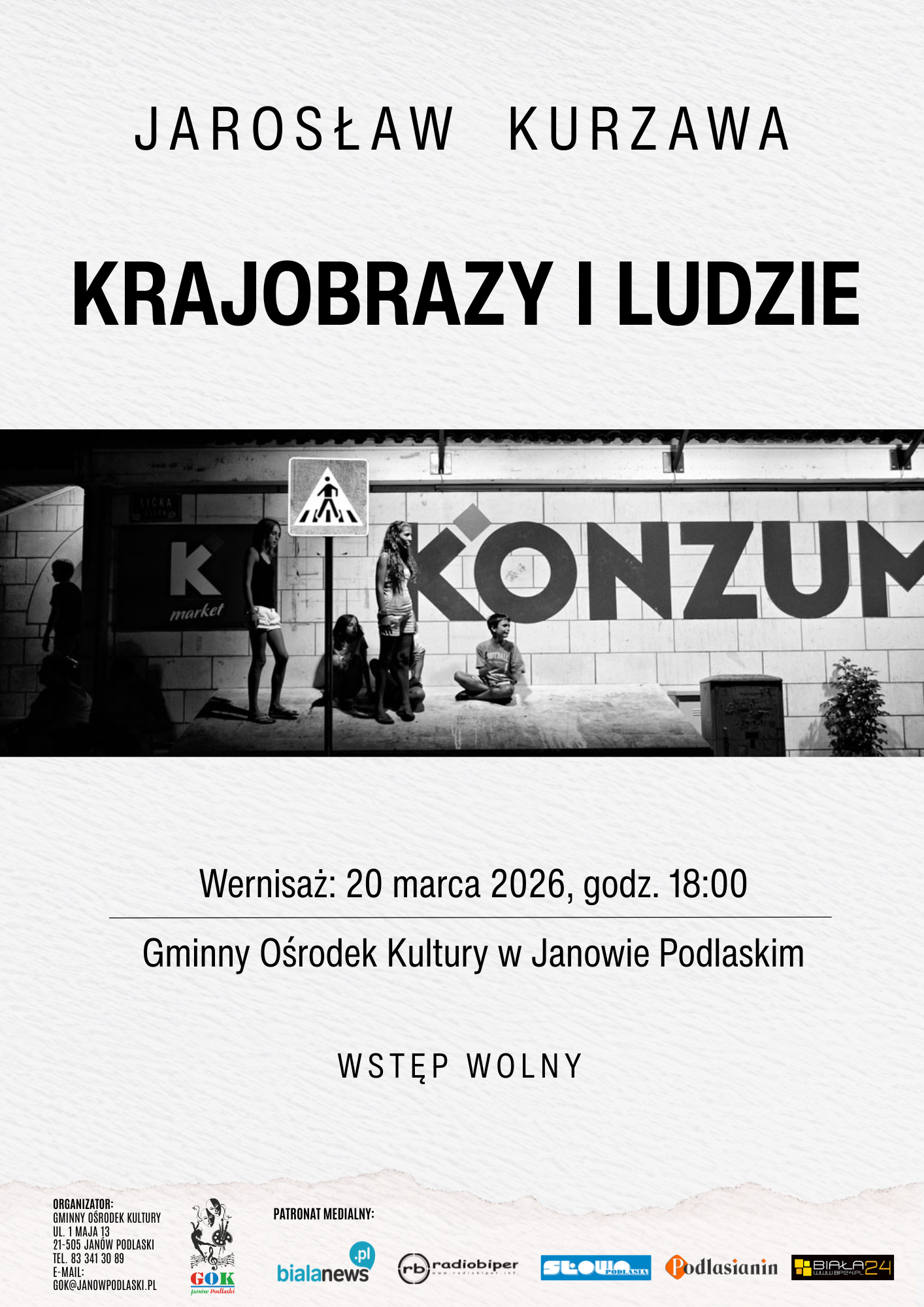 W Gminnym Ośrodku Kultury w Janowie Podlaskim odbędzie się wernisaż wystawy fotografii Jarosława Kurzawy zatytułowanej „Krajobrazy i ludzie”. Otwarcie ekspozycji zaplanowano na 20 marca o godz. 18.00 w siedzibie GOK.