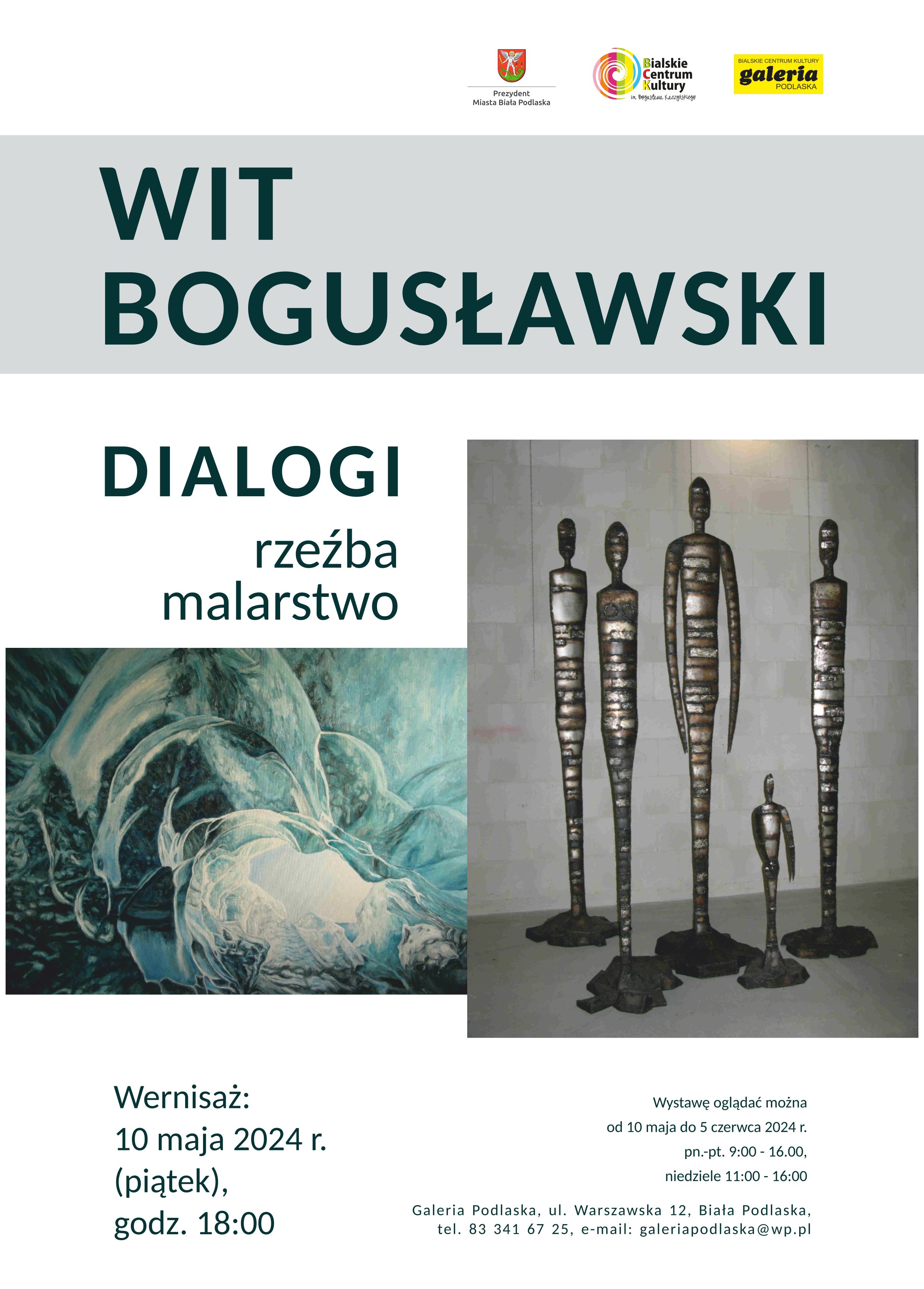 Wit Bogusławski urodził się w 1960 roku w Warszawie. Ukończył Uniwersytet Sztuk Pięknych Mimar Sinan- Istambuł 1982-86, ASP Warszawa 1986-87, ASP Wrocław 1987-91. Otrzymał również dyplom z rzeźby 1991 w pracowni prof. Leona Podsiadłego. Należy do ZPAP i stowarzyszenia Fabryka Sztuki oraz malarzy skupionych w Grupie Hoovera. Na swoim koncie ma liczne prywatne i publiczne realizacje rzeźbiarskie. Uprawia również malarstwo olejne i rysunek. Brał udział w licznych wystawach i plenerach. Jego prace znajdują się w zbiorach w kraju i zagranicą.Wystawa potrwa do 5 czerwca 2024 roku.