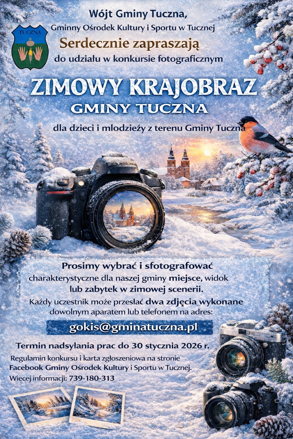 Wójt Gminy Tuczna oraz Gminny Ośrodek Kultury i Sportu w Tucznej zapraszają dzieci i młodzież do udziału w zimowym konkursie fotograficznym. Konkurs ma na celu uchwycenie zimowego piękna Gminy Tuczna – mogą to być charakterystyczne miejsca, widoki lub zabytki w zimowej scenerii.