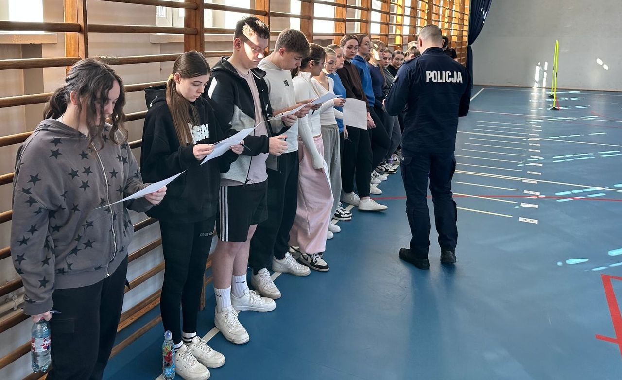 Test sprawności fizycznej dla uczniów klasy maturalnej o profilu policyjnym w Zespole Szkół im. Władysława Tatarkiewicza w Radoryżu Smolanym odbył się 9 marca. Egzamin został przeprowadzony w ramach procesu rekrutacyjnego do służby w policji i składał się z czterech prób sprawnościowych, które przeprowadzili instruktorzy taktyki i techniki interwencji z Komendy Wojewódzkiej Policji w Lublinie oraz Komendy Powiatowej Policji w Łukowie.Przed rozpoczęciem każdej z prób funkcjonariusze omawiali jej przebieg oraz przekazywali uczestnikom wskazówki dotyczące techniki i zasad wykonywania poszczególnych ćwiczeń. Test zaliczyło 14 uczniów i uczennic. Teraz przed nimi kolejne etapy rekrutacji.
