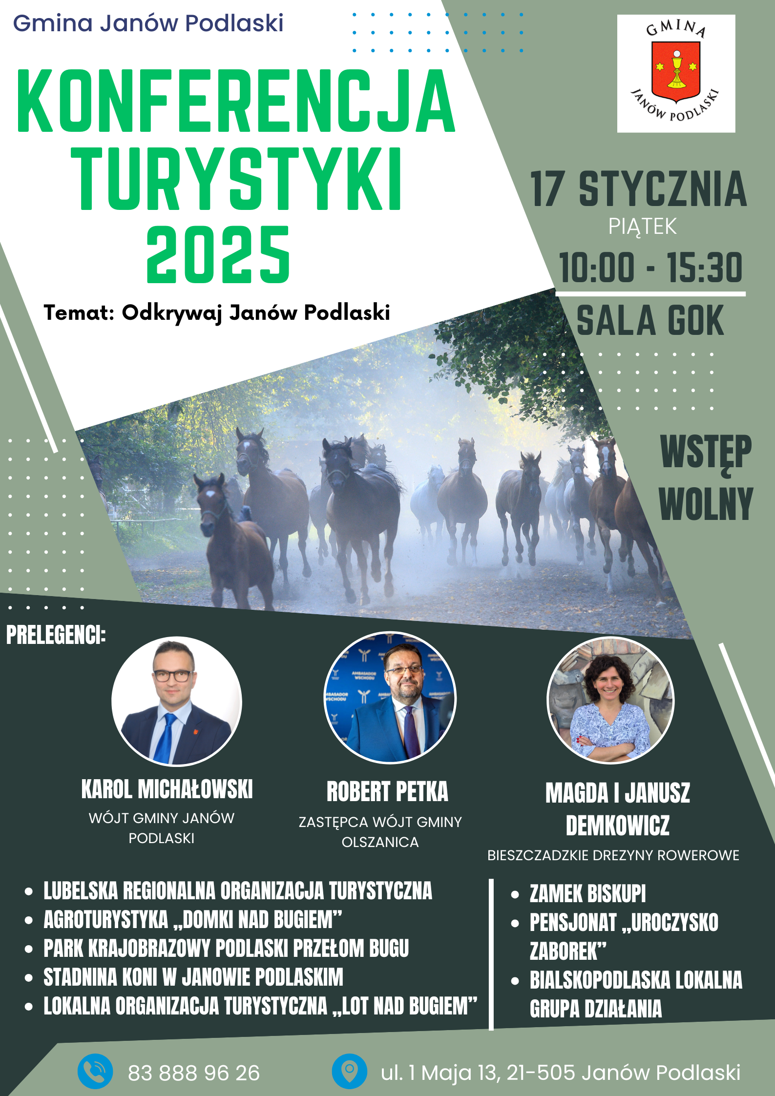 Gmina Janów Podlaski organizuje Konferencję Turystyki „Odkrywaj Janów Podlaski”. Celem spotkania jest promocja turystyki w regionie, omówienie potencjału turystycznego oraz współpraca z lokalnymi przedsiębiorcami i instytucjami.