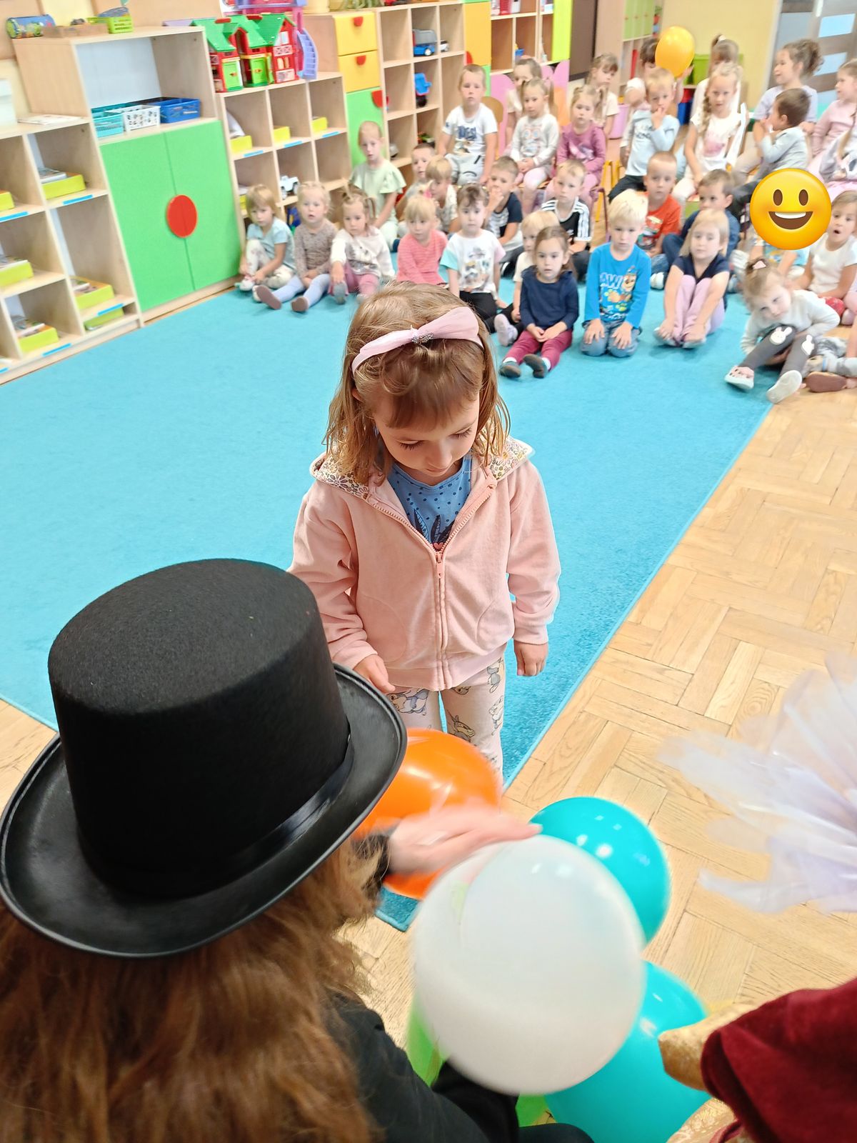 Jedną z największych atrakcji dnia był konkurs zgadywanka. Uczniowie odczytywali krótkie opisy znanych bohaterów bajek, a zadaniem dzieci było odgadnięcie, o kim mowa. Zabawa wywołała wiele radości i śmiechu, a za trafne odpowiedzi najmłodsi otrzymywali kolorowe baloniki i ilustracje postaci do samodzielnego pokolorowania.