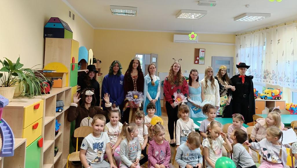 Nie była to jednak zwykła wizyta. Licealiści wcielili się w postacie z klasycznych i współczesnych bajek – przedszkolaki mogły spotkać m.in. Kota w Butach, Calineczkę, Królewnę Śnieżkę, Elsę z „Krainy Lodu”, a także wesołego Żuka, uśmiechniętą Biedronkę i sprytną Małpkę. Każda z tych postaci przygotowała dla dzieci bajki i wierszyki czytane na głos – z humorem, ekspresją i ogromnym zaangażowaniem.
