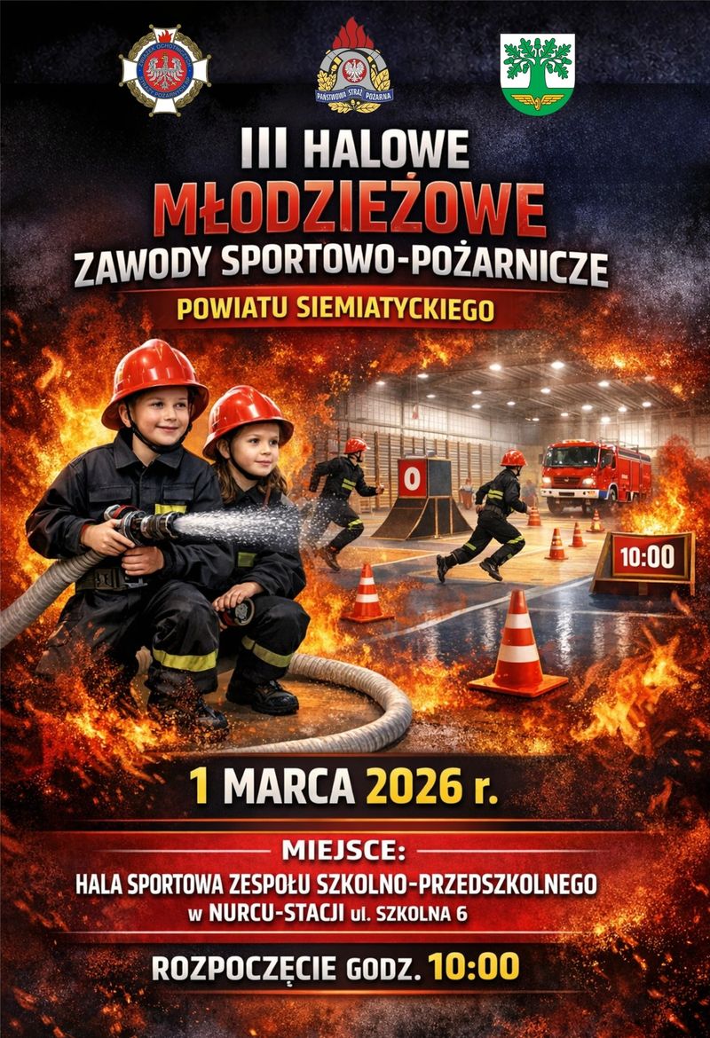 W rywalizacji weźmie udział 17 młodzieżowych drużyn pożarniczych z terenu powiatu siemiatyckiego. Wydarzenie będzie doskonałą okazją, aby zobaczyć w akcji młodych adeptów pożarnictwa, którzy zaprezentują swoje umiejętności, sprawność fizyczną oraz ducha zespołowej rywalizacji.Zawody rozpoczną się o godz. 10:00 w hali sportowej Zespołu Szkolno-Przedszkolnego w Nurcu-Stacji (ul. Szkolna 6).