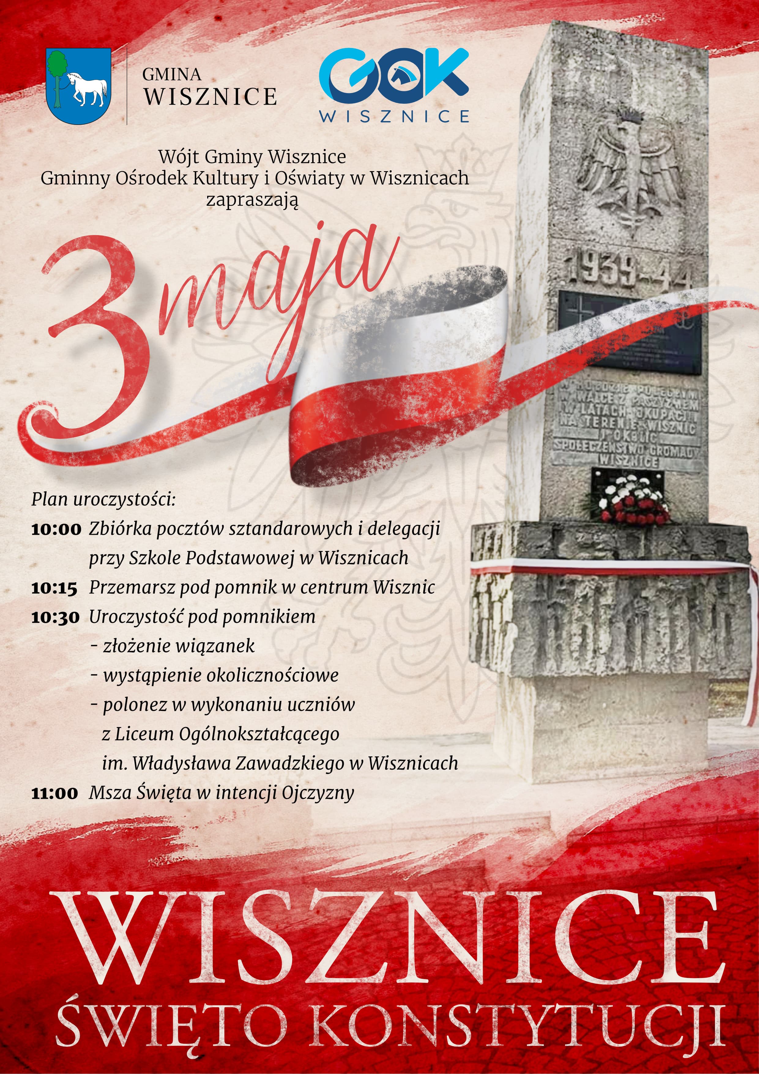 Obchody 233. rocznicy uchwalenia Konstytucji 3 Maja odbędą się w Gminie Wisznice. Władze samorządowe oraz Gminny Ośrodek Kultury i Oświaty zapraszają mieszkańców do udziału w uroczystościach upamiętniających to ważne wydarzenie w historii Polski.