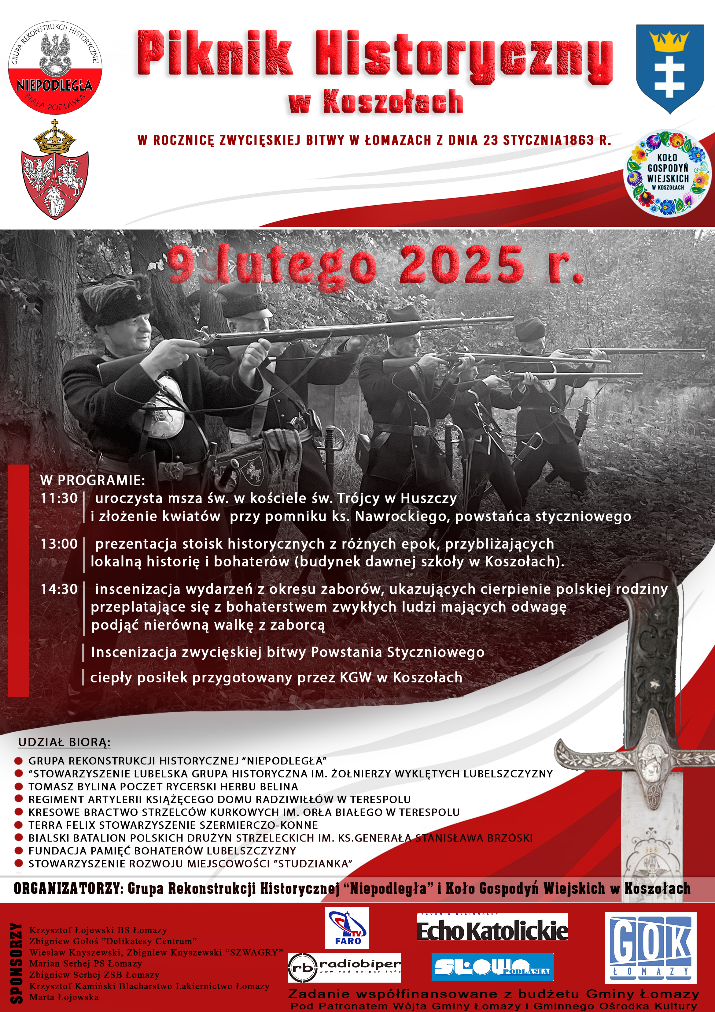 Z racji 162. rocznicy zwycięskiej bitwy Powstania Styczniowego, w Koszołach pod Łomazami, (gmina Łomazy) odbędzie się piknik historyczny z rekonstrukcją walk.