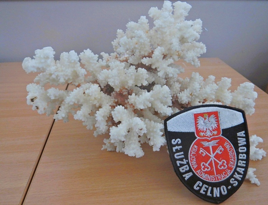 Podczas kontroli samochodu osobowego wjeżdżającego z Białorusi do Polski funkcjonariusze Służby Celno-Skarbowej odkryli w bagażu obywatelki Białorusi fragment rafy koralowej o wadze ponad 1,5 kg. Koralowce są gatunkami zagrożonymi wyginięciem i objęte ochroną na podstawie Konwencji Waszyngtońskiej CITES.