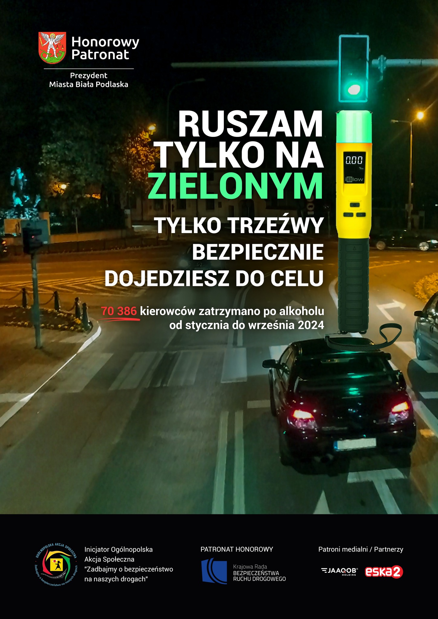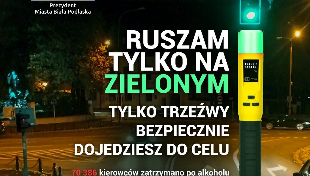 Trwa akcja społeczna „Ruszam tylko na zielonym - tylko trzeźwy bezpiecznie dojedziesz do celu” to inicjatywa, która ma na celu zwiększenie świadomości na temat bezpieczeństwa na drodze. Honorowym Patronatem objął ją prezydent miasta Biała Podlaska Michał Litwiniuk.