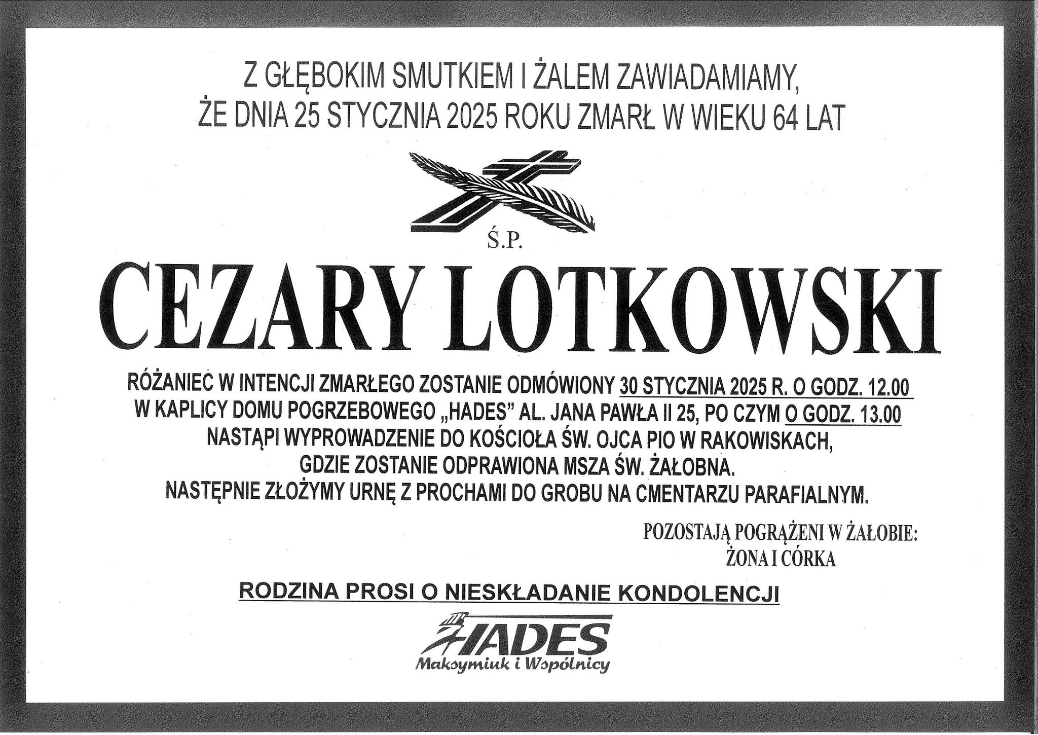 O uroczystościach pogrzebowych informują koledzy z Pogotowia Ratunkowego z Białej Podlaskiej. O godz. 12.00 w kaplicy Domu Pogrzebowego “Hades” w Białej Podlaskiej rozpocznie się różaniec w intencji Zmarłego. O godz. 13.00 - wyprowadzenie do kościoła Św. Ojca Pio w Rakowiskach k. Białej Podlaskiej, gdzie będzie sprawowana Msza św. Po niej urna z prochami zostanie złożona na cmentarzu parafialnym w Białej Podlaskiej.