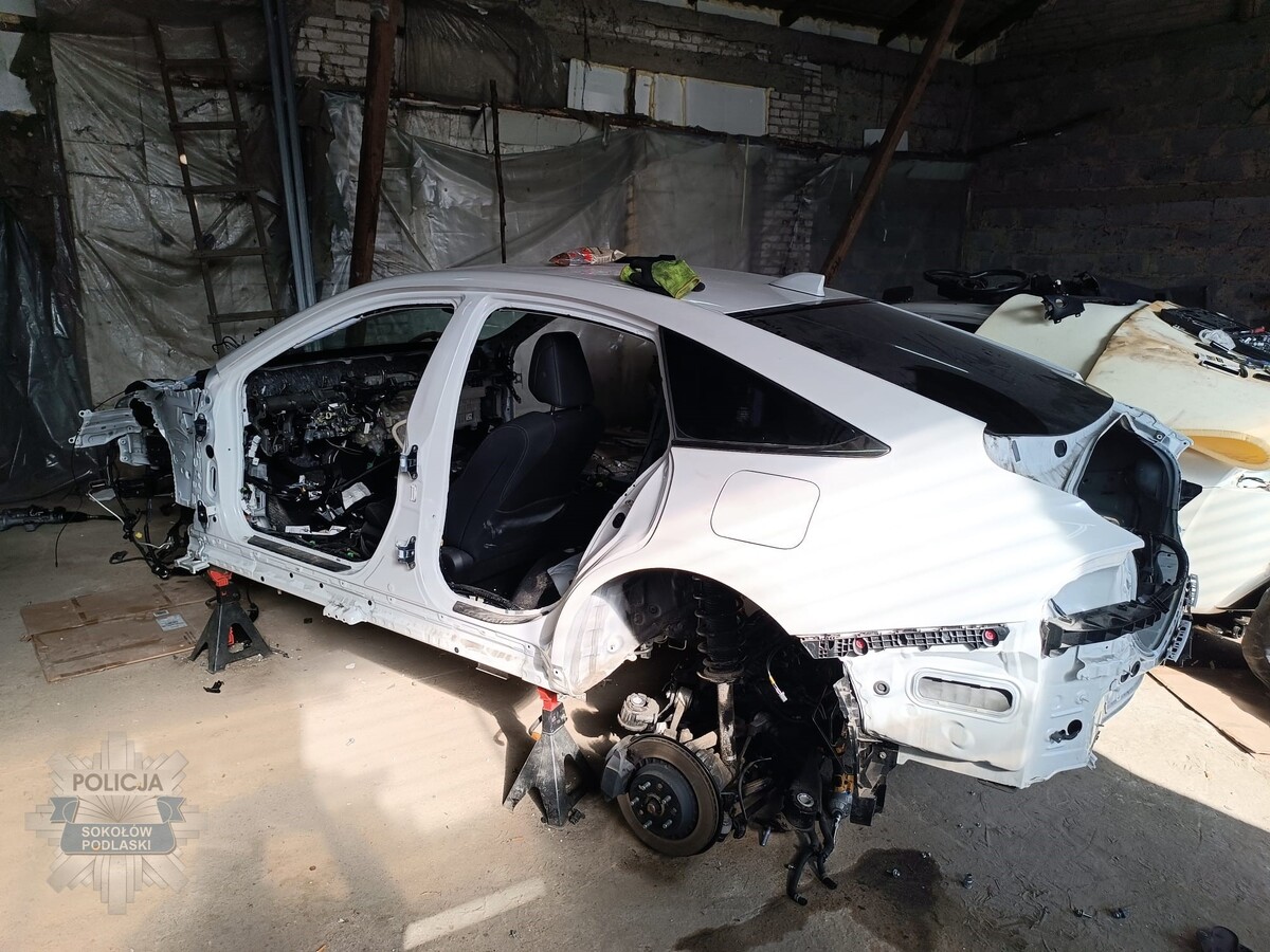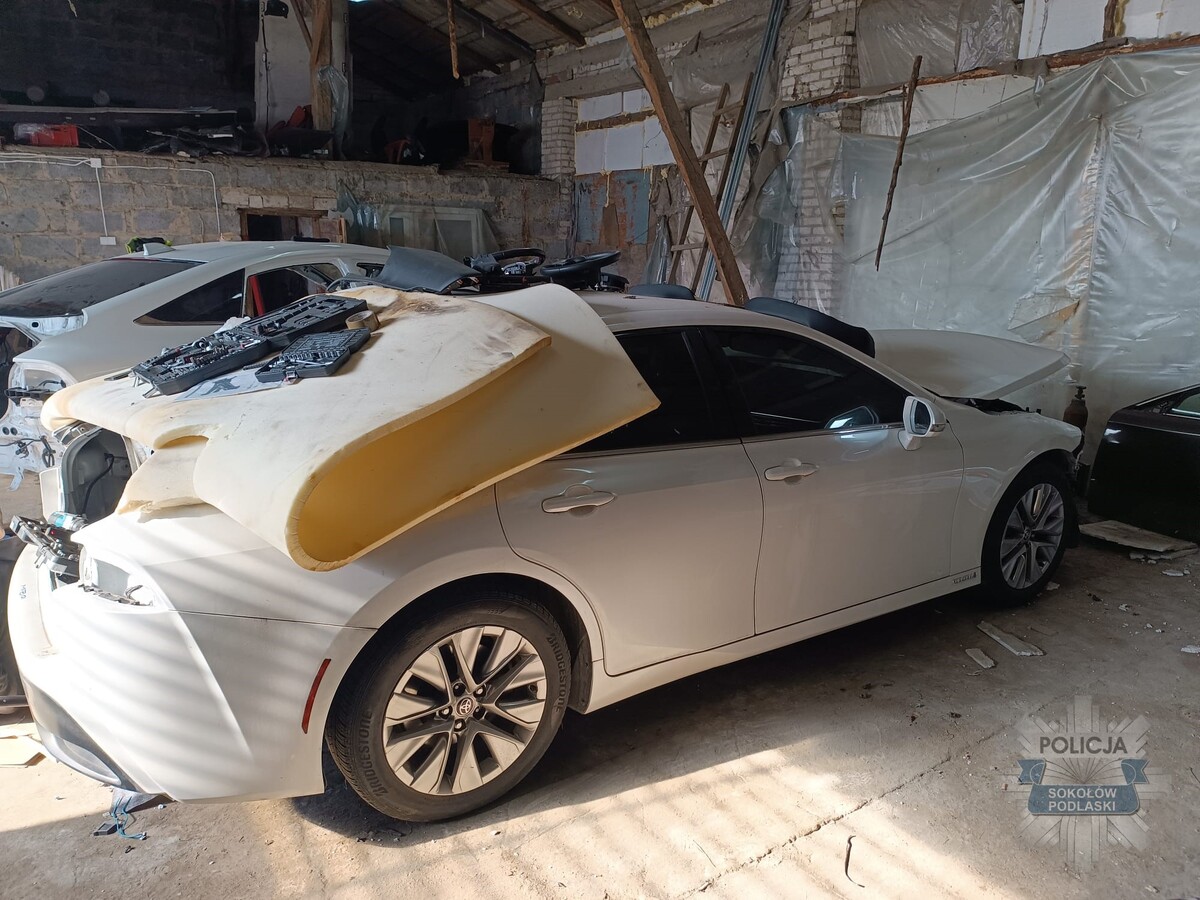 Do zatrzymania doszło w środę, 4 marca. Funkcjonariusze z Zespołu Operacyjno-Rozpoznawczego Wydziału Kryminalnego sokołowskiej komendy wpadli na trop miejsca nielegalnej rozbiórki samochodów. Podczas działań operacyjnych zatrzymali na gorącym uczynku dwóch mężczyzn w wieku 32 i 46 lat.Na miejscu ujawniono dwa częściowo zdemontowane samochody marki Toyota zasilane wodorem, które figurowały w policyjnych rejestrach jako skradzione z powiatu wołomińskiego. Policjanci zabezpieczyli także elementy pochodzące z innych pojazdów, w tym części karoserii od BMW. Dodatkowo przy zatrzymanych znaleziono substancje psychotropowe.