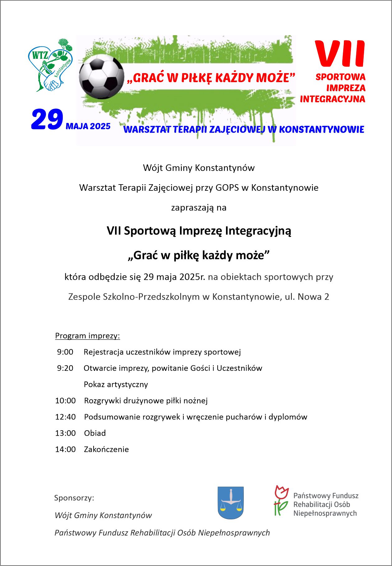 29 maja w Konstantynowie odbędzie się VII Sportowa Impreza Integracyjna „Grać w piłkę każdy może”.